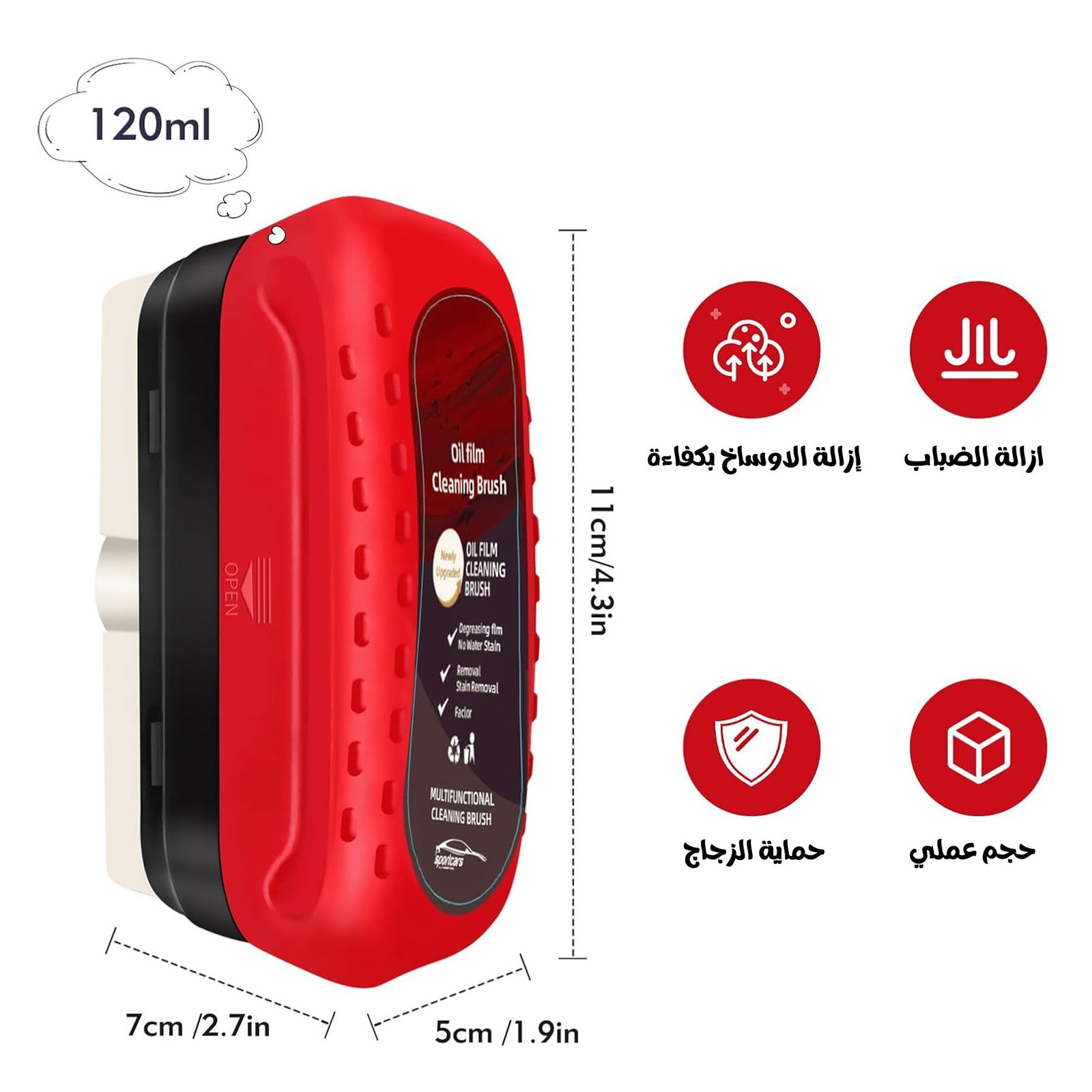 – ينظف غشاء الزيت والأوساخ العنيدة، يخلي الزجاج صافي بدون خطوط.