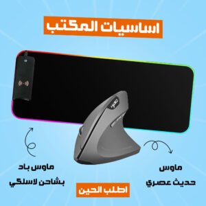 أساسيات مكتبك بتقنيات حديثة ومزايا ما تتفوت، ماوس حديث عصري + ماوس باد بشاحن لاسلكي، لا تفوت العرض.