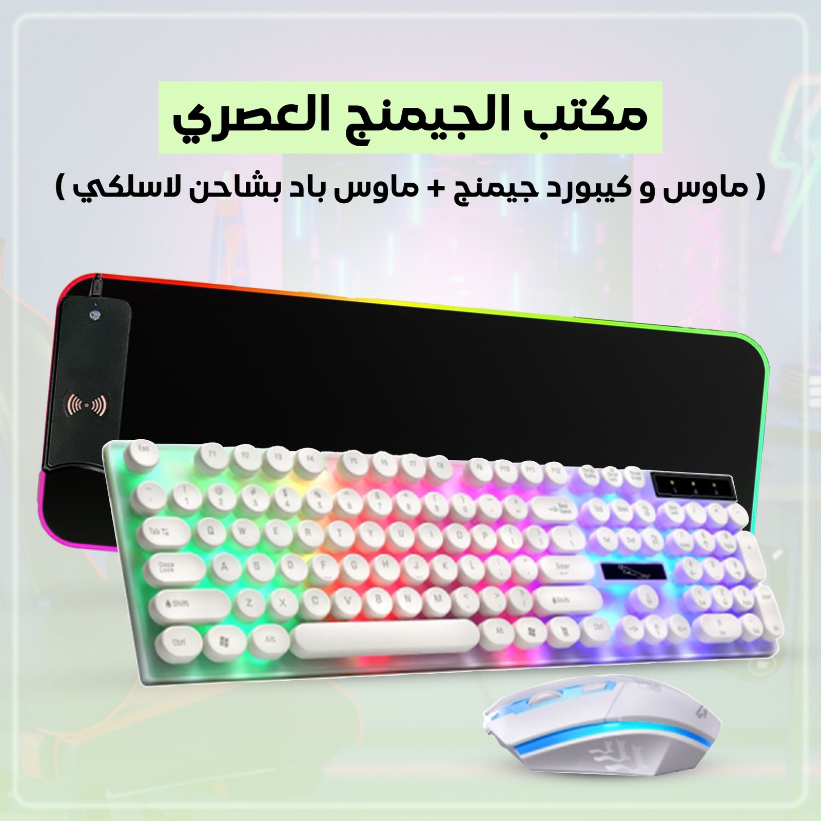أداء عالي وتصميم يخليك تلعب بثقة مع ماوس و كيبورد جيمنج + ماوس باد بشاحن لاسلكي لا يفوتك.