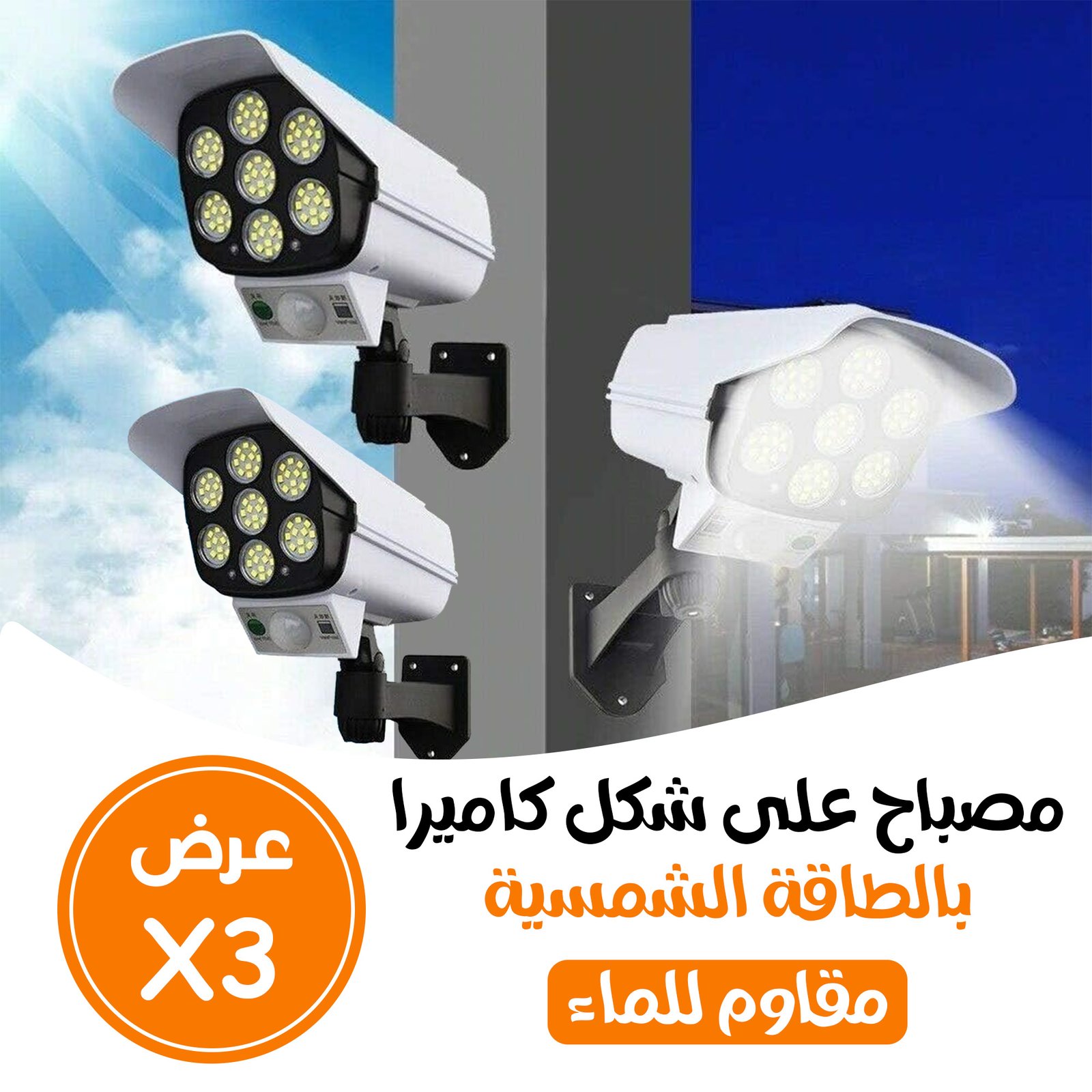 • ثلاث حبات مصابيح على شكل كاميرا لحماية المنزل والعمل
