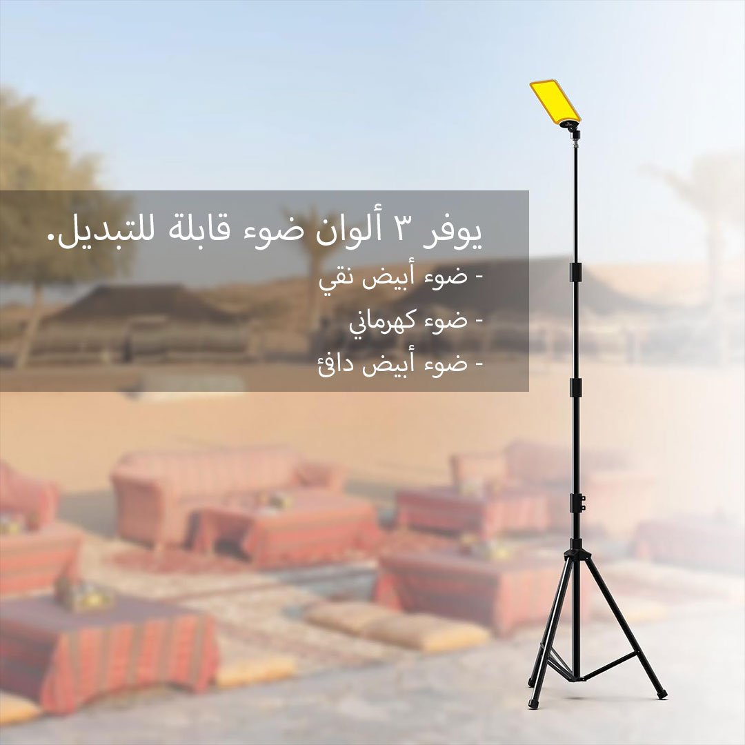 – معه حامل عمودي وحامل ثلاثي القوائم وسلك بطول 5 متر.