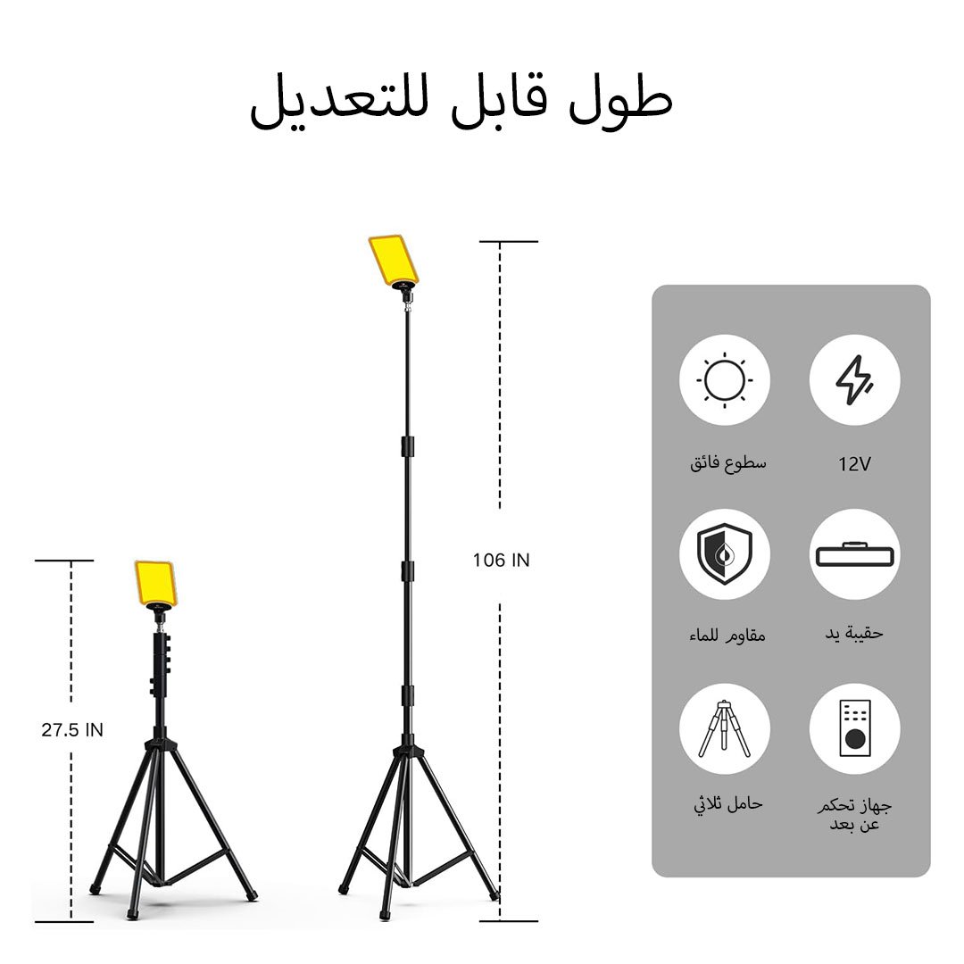 – يمكن تشغيل المصباح باستخدام بطارية السيارة أو أي بطارية 12 فولت