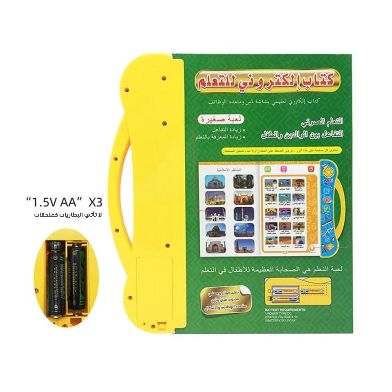 – البطارية: يحتاج 3 بطاريات AA (كل وحدة 1.5 فولت).
