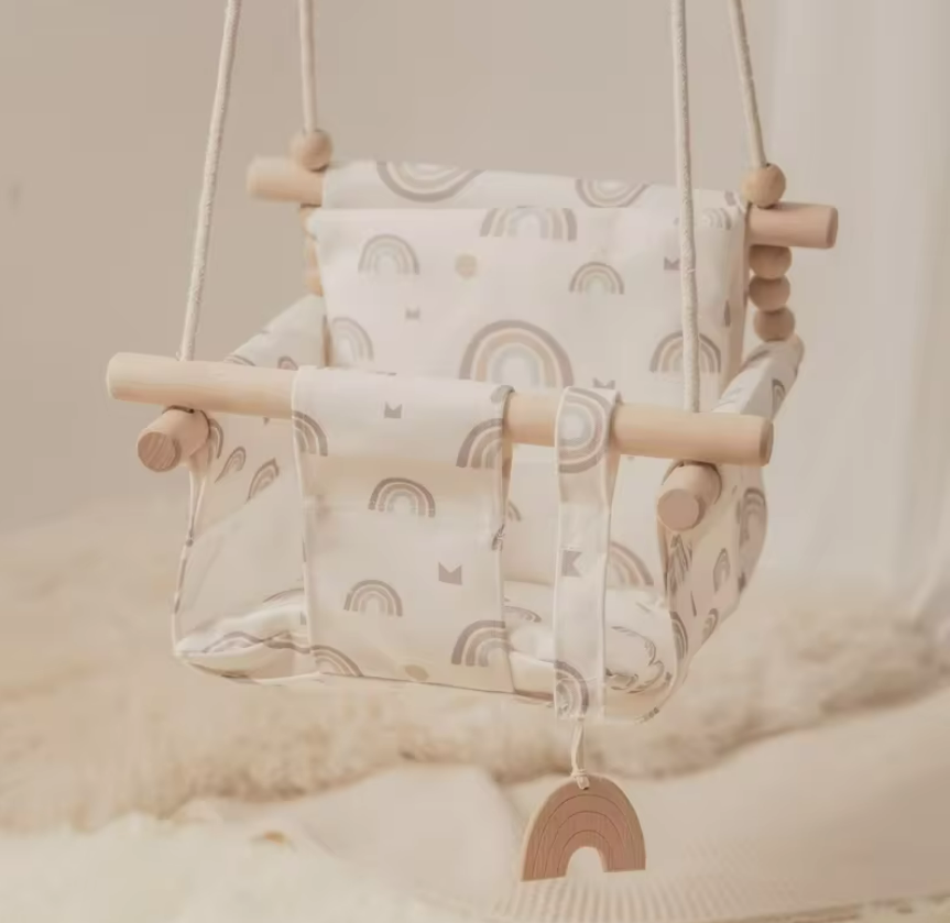 • مقعد متأرجح معلق خشبي محمول